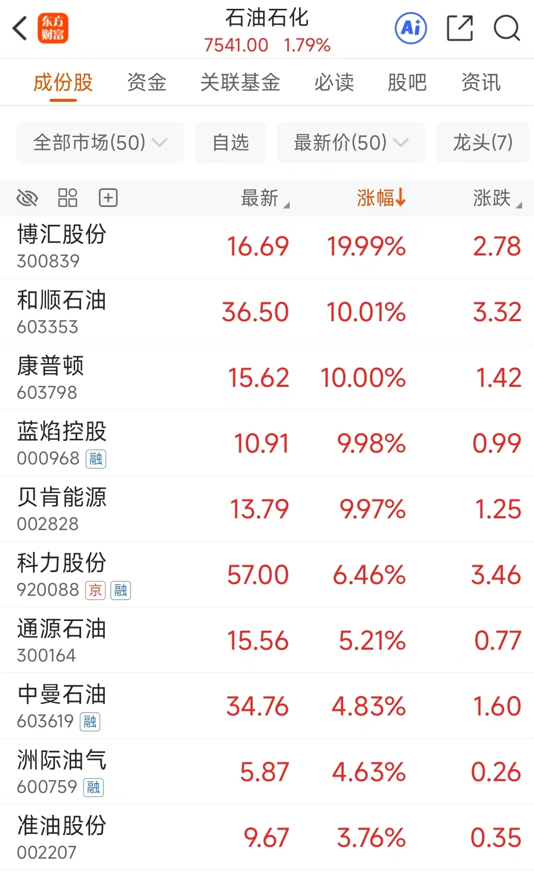 石油石化板块4月2日早盘表现强势,博汇股份、和顺石油、康普顿、蓝焰控股、贝肯能源涨停,科力股份、通源石油、中曼石油、洲际油气、准油股份明显跟涨。